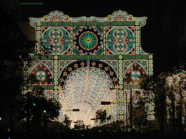 そして神戸大丸店の東側筋へと再びその帯は現れてルミナリエ会場へと向かう。